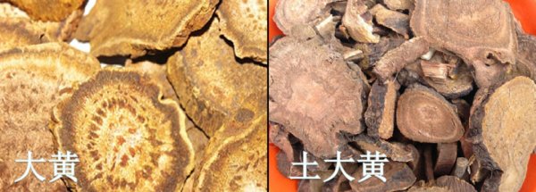 两者来源于同属植物,植物形态又相似。大黄为临床常用中药,具有泻下攻积,清热泻火,凉血解毒,逐瘀通经,利湿退黄的功效。由于大黄市场需求量及消耗量均较大,利益驱使下易出现人为掺伪现象,土大黄为大黄的伪品之一,影响了用药疗效及。所以须注意鉴别。
